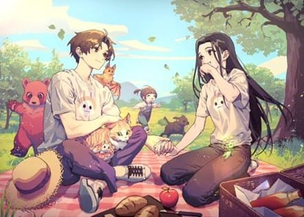 Sejun extendió un mantel sobre el pasto y sacó las loncheras que había preparado.