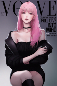 La foto de Miho ocupaba un lugar destacado en la portada. Parecía que ella era la modelo de la revista. Además, había varios imágenes de Miho, incluyendo algunos que requerían pago para verlos.